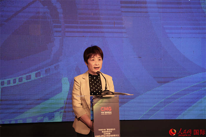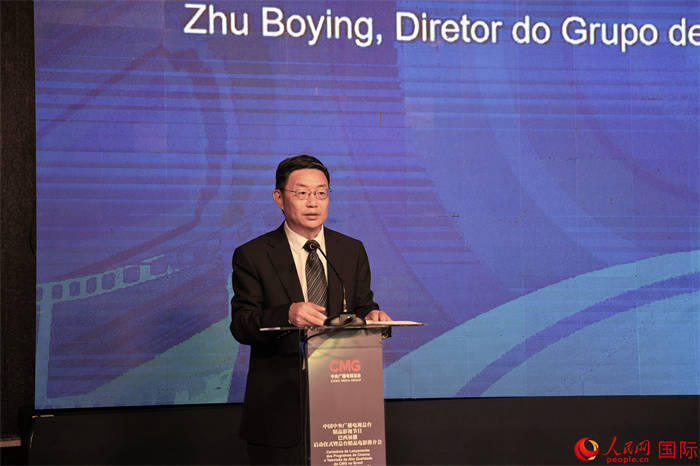 中央广播电视总台拉美总站站长朱博英在第五届巴西“中国影视作品展播季”活动中致辞。人民网记者 时元皓摄